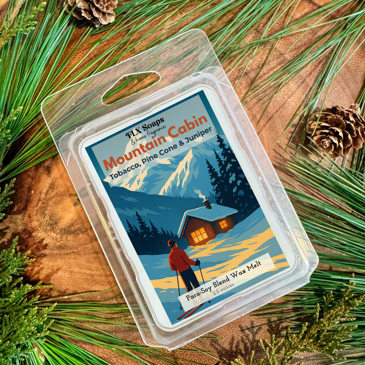 Warm light glows through frosted windows, and the scent of pine and woodsmoke lingers in the air — Mountain Cabincaptures the quiet comfort of winter nights spent tucked away in the hills. Fresh pine, bay leaf, and cool ozone open the fragrance with a breath of crisp mountain air. At its heart, cedarwood, fir, and smooth sandalwood blend with a hint of bright bergamot, grounding the scent in cozy sophistication. As it deepens, notes of tobacco leaf, raspberry, and vanilla create a rich, comforting finish — like an evening by the hearth after a long day on the slopes.